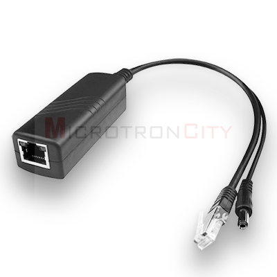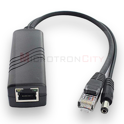 - Splits the 48VDC power over RJ45 Ethernet cable into 12V DC output.